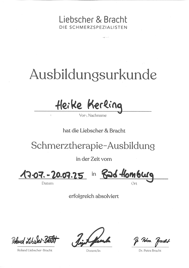- Zertifizierte Liebscher & Bracht Schmerztherapeutin