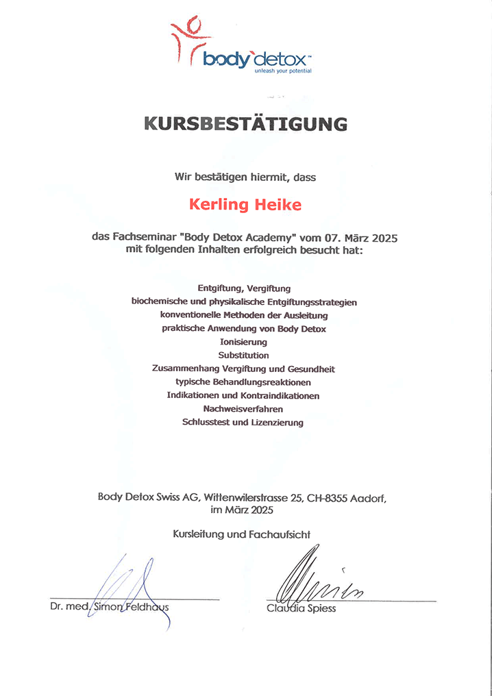 Zertifizierung zur Anwendung von Body-Detox-Elektrolyse-Fußbad in Aadorf/CH